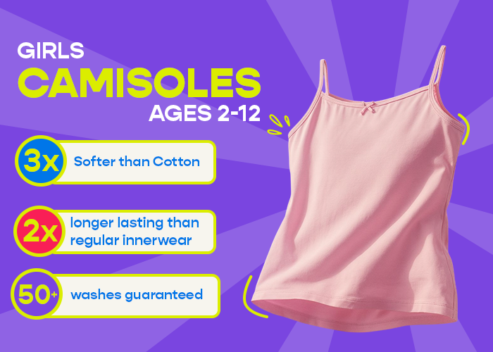 From solids to pastels, Kiko Riko offers breathable camisole undershirts for girls that are lightweight and soft.