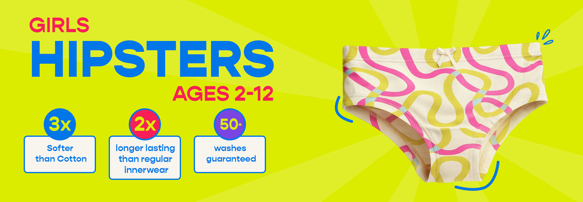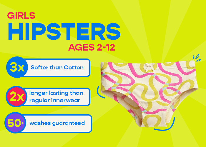 Hipsters for girl kids are a style of underwear that is worn just below the belly and rests comfortably on the hips. They aren’t too high like regular briefs and not too low like bikini briefs, they’re something in the middle. If you're looking for the perfect balance of comfort and fit in kids' underwear for girls, hipsters are a great everyday choice. This is why many parents now choose girls underwear hipster for a smooth, modern fit.