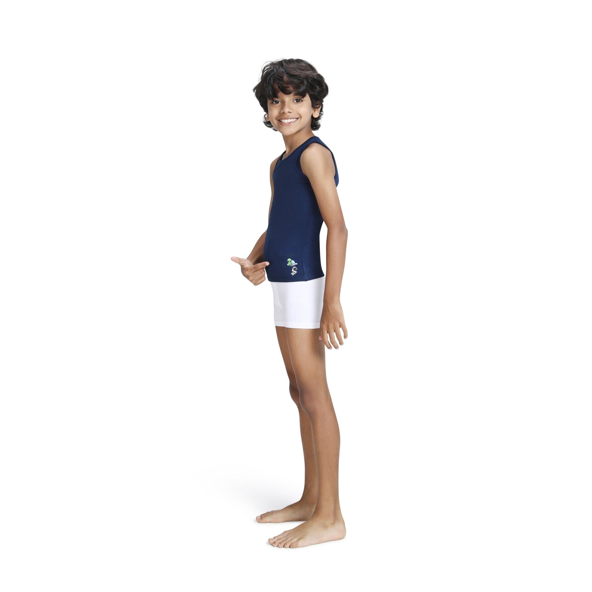 Our kids boy blue vest is thoughtfully designed with a smooth waistband, irritation free stitching, and a comfort fit that will literally move with your kid.