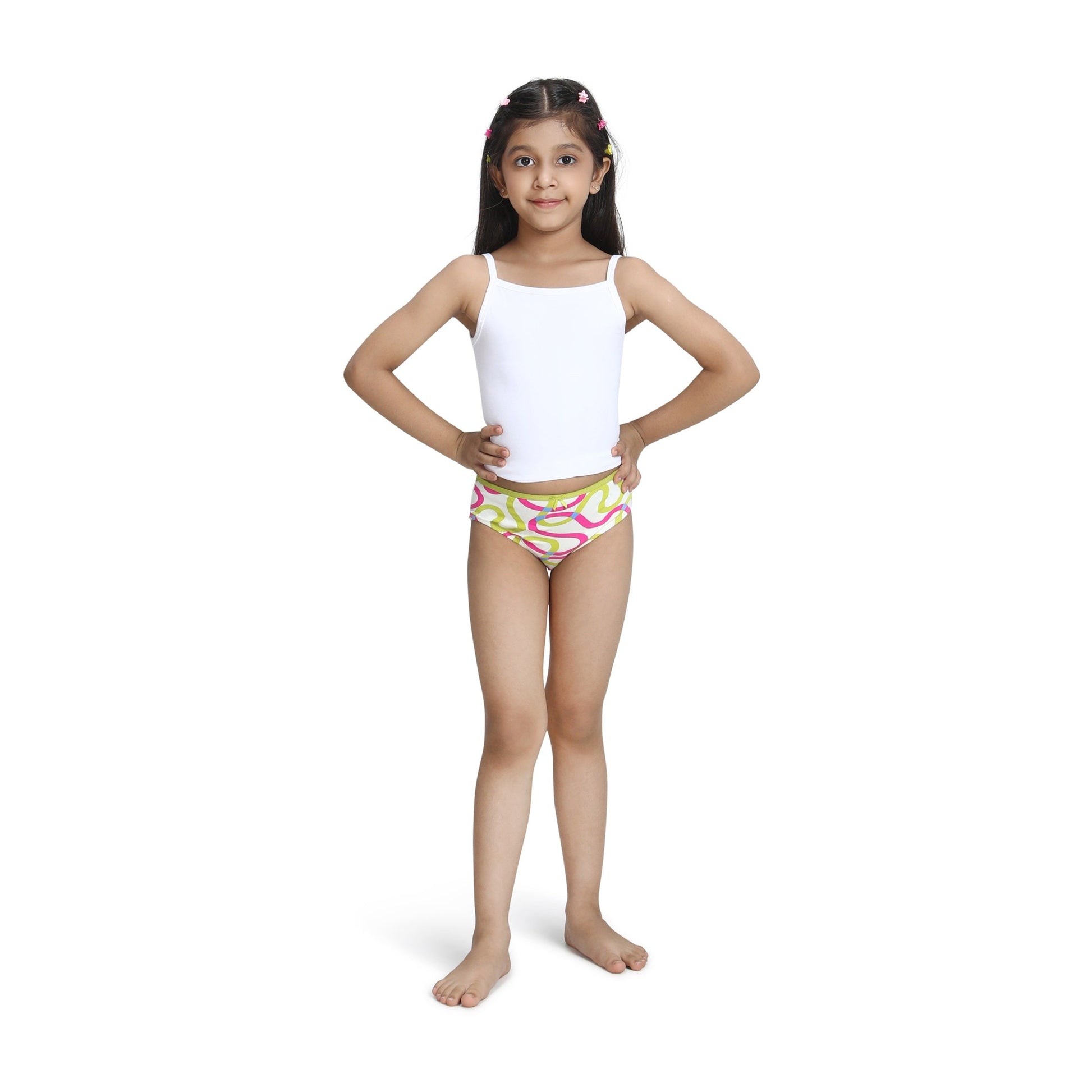 Bikini brief panties for kid girls have a lower rise and slimmer fit. They can be easily worn under dresses or snug clothes as they offer full comfort and coverage.